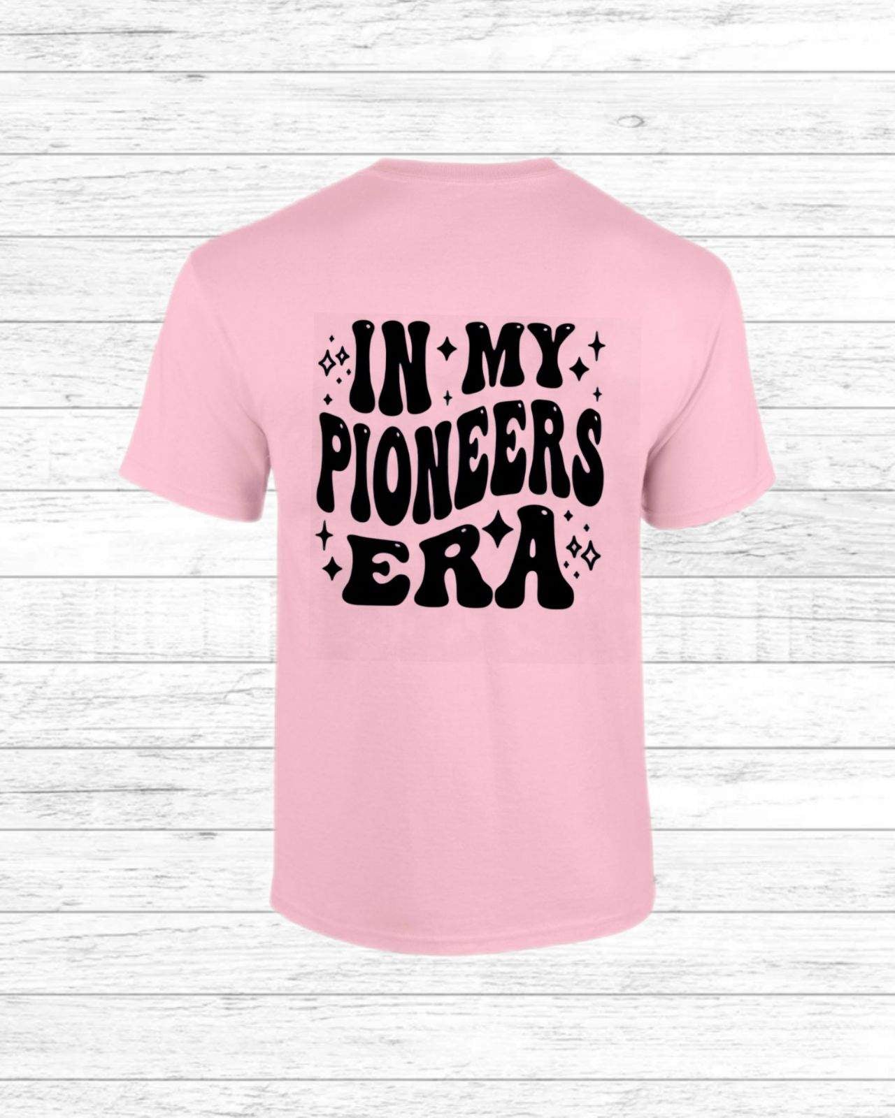 Swiftie inspired T-Shirt with PSES on the front, with “In My Pioneers Era” across the back of the T-Shirt.